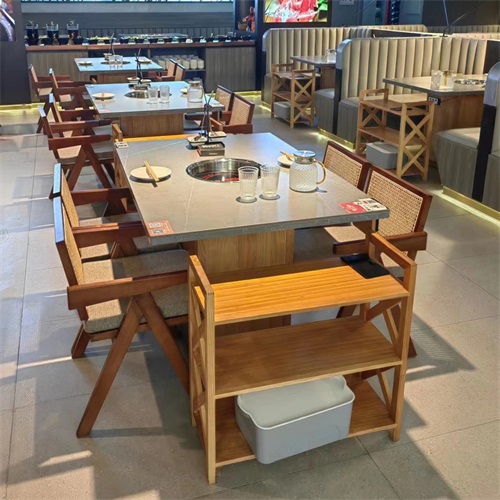 【家具名稱】:牛肉火鍋岩板下沉式電磁爐火鍋桌