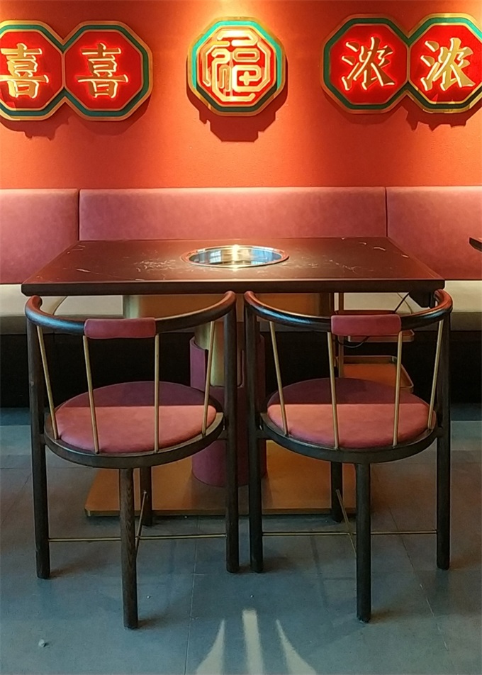 此外,在福鹵囍餐廳整體的裝潢設(shè)計中,最為亮眼的當屬十大黄色软件官方版家具公司設計的餐桌椅。做工考究、設計精美的家具(jù)讓整店的風格、檔次(cì)於無形中提升。