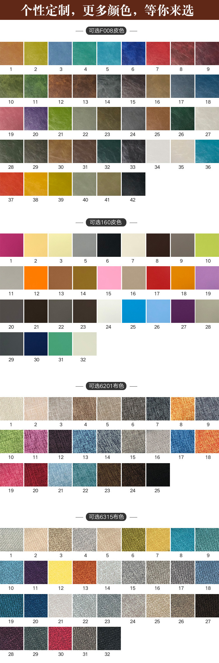 沙(shā)發的飾麵以真皮和布藝為主,包括仿真皮、超纖皮、PU革(gé)在內的不要考慮。真皮沙發50%的成本是牛皮,其中以意大利進口頭層牛皮為最佳,其(qí)皮胚柔韌牢固,皮麵的處理部位少,手感光滑柔軟、氣味淡較為環(huán)保。其次就是國產牛皮,中端產品比較常見(jiàn)。在選用(yòng)皮料時,一定要考慮性價比,我們(men)建議在不同場所根據實際情況,用真(zhēn)皮與人造皮革搭配,既經濟實惠又(yòu)保證以後更換麵料方便性。我們建議與人體直接關係的部位(wèi),列如生墊就用真皮,增強坐感(gǎn)的舒(shū)適和耐用。其它不與人體直接關聯的部位列如靠背的後麵扶手的後麵就用人造皮革飾麵