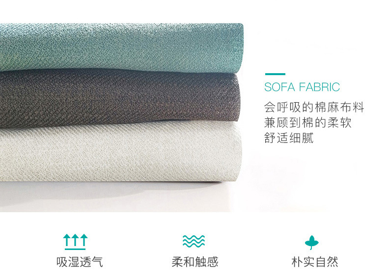 至於布藝,種類相當多,麵料可分(fèn)為國產和進口,布料相差很大,一般布分麻、棉、混紡、化纖。歐美專業廠家生產的沙發(fā)專用麵料品質優良,色差極小,色牢度高,織品無緯斜(xié),特別是一些高檔麵料為提高防汙能(néng)力,表麵還進行(háng)了特種處(chù)理。進口高檔麵料還具(jù)有抗(kàng)靜電、阻燃等功能。天然材質中棉、麻較常見。布料的特點是柔軟透氣,給人休閑安靜,當然現在的科技發達,很多布(bù)料從視覺上看也能有皮料(liào)的(de)感覺。