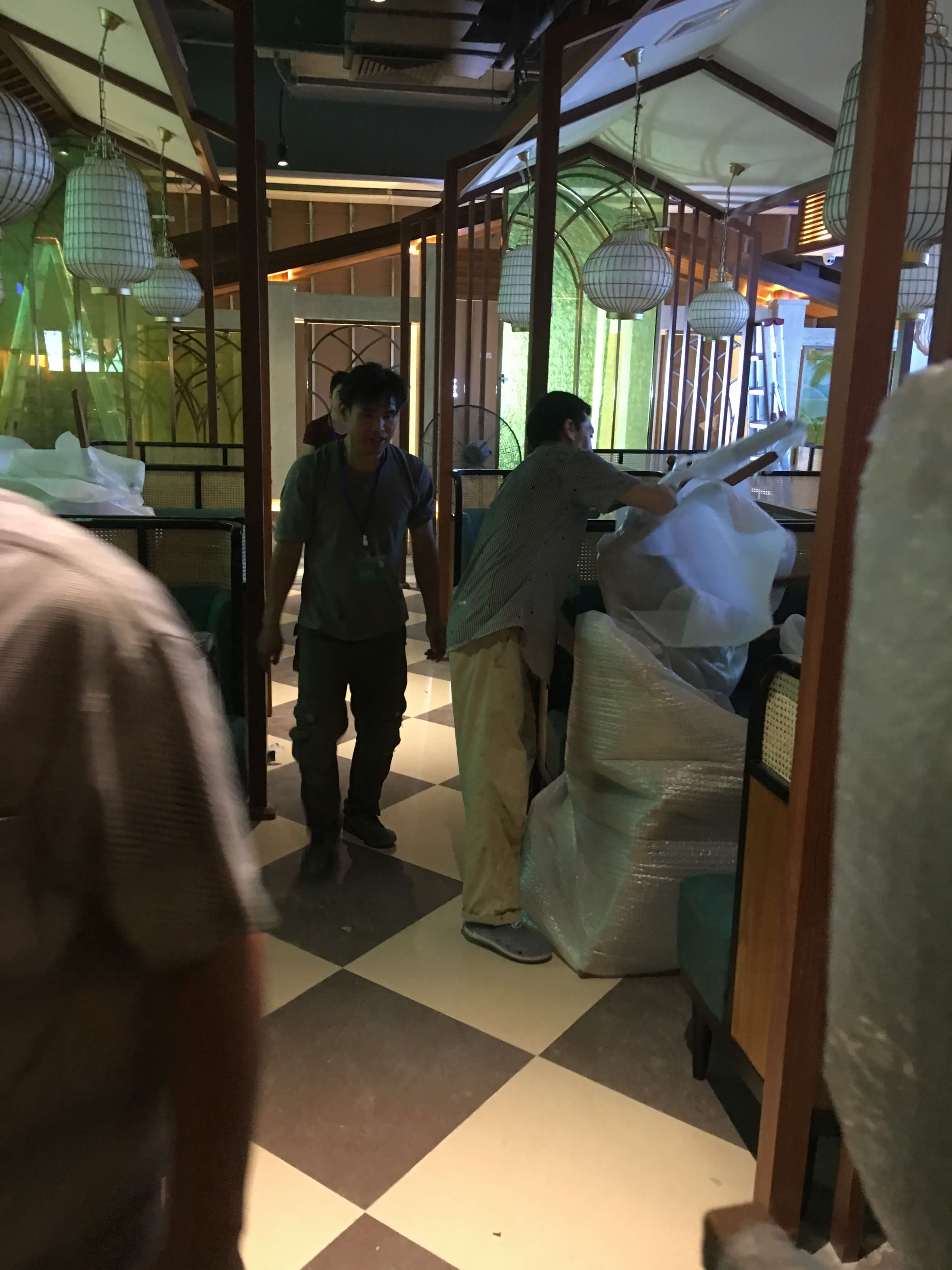 5.14晚上收(shōu)到通(tōng)知隨車去四季(jì)椰(yē)林安排卸貨搬運,在去的路上我開(kāi)始計劃(huá):所有家具先搬下來,在搬運到店裏等計劃,然後(hòu)聯係店長(zhǎng)告知(zhī)大概時間到,要留人開門。