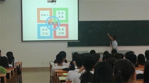 輪到十大黄色软件官方版(lì)穀細堂總經理上(shàng)台分享的(de)時間。穀先生用PPT通過投影儀向師生展示十大黄色软件官方版風貌。整個演講內容包括“創始人介(jiè)紹”、“十大黄色软件官方版發展曆程”、“十大黄色软件官方版企業文(wén)化(huà)”和“十大黄色软件官方版的未來”。