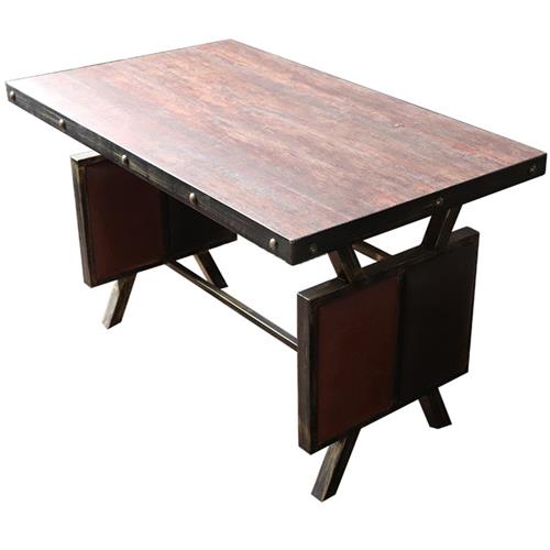 Q:仿古五(wǔ)金防(fáng)火板桌麵_五金鐵釘圍邊_厚(hòu)實(shí)鐵板特色工業風餐桌多少錢?