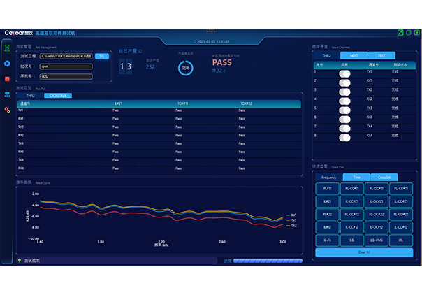 精準提煉用戶需(xū)求,采用(yòng)測試應用工程文(wén)件式存儲,支持測試界麵和文本兩種編輯模式,操作(zuò)門檻低;支持用戶定製化協議參數導入以及測試結果的自動判定,具備互聯組件測試結果(guǒ)Pass/Fail標識,具備通道各指標的結果(guǒ)預覽功能,具備測試結果曲線的可視化功能,具備圖形化測試報表(biǎo)導出功能以及遠端Mes數據上傳功能。