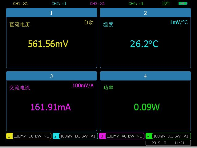 4382B/C/D/E四通道機型數字表功能提供了(le)4個(gè)數字電壓表,具有電壓(yā)、電流(電流探頭)、溫度(溫度探頭)、功率等的測量功能,可(kě)顯示5位有效數字。數字表複用示波器輸入接口,極大簡化了操作,快速地解決(jué)多種模(mó)擬量設計與分析問題。
