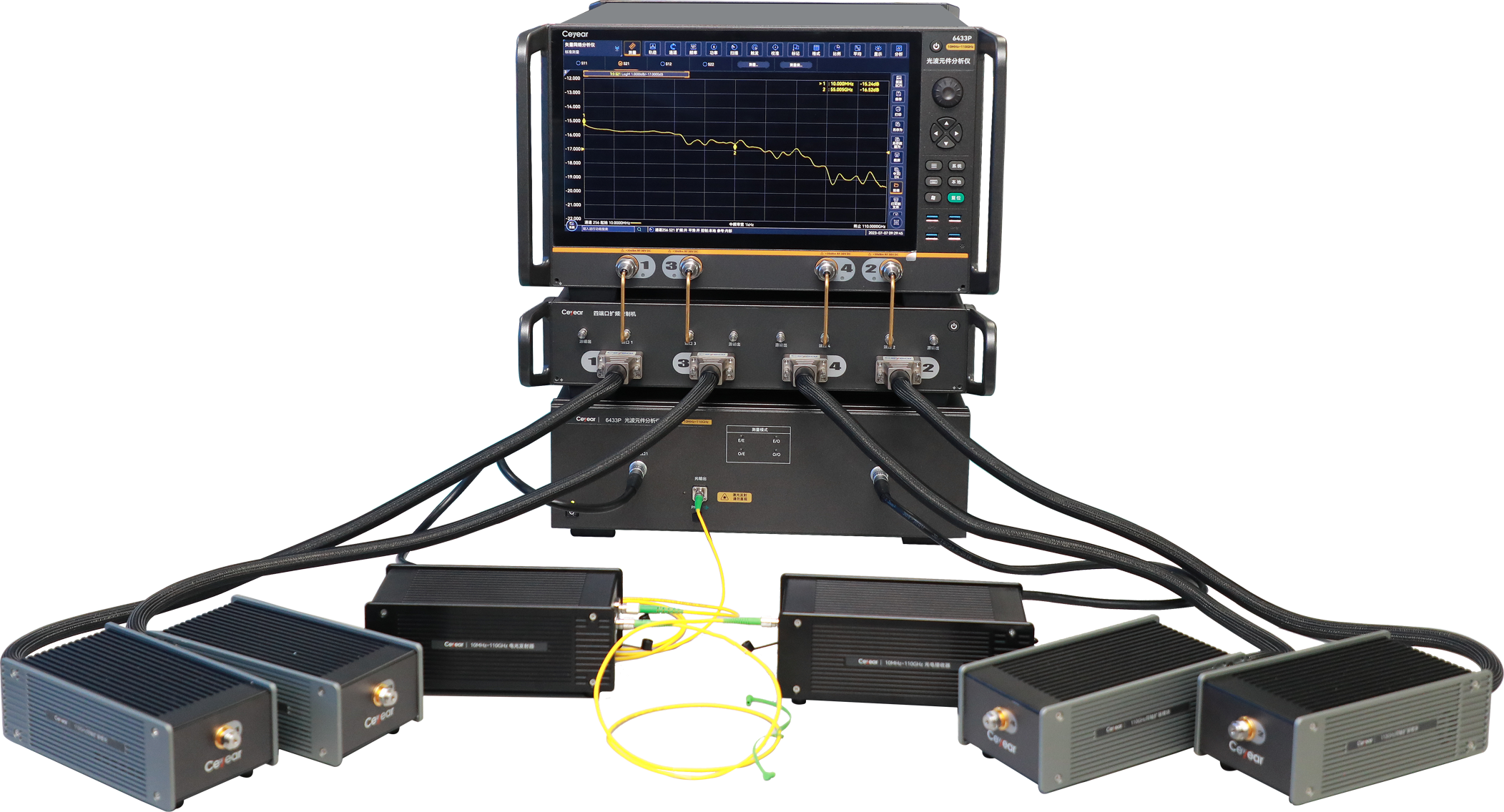 6433P光波元件分析儀調製頻率最高(gāo)可達110GHz,最小頻率分辨率為1Hz,可實現高(gāo)速寬頻帶(dài)光器(qì)件及光(guāng)芯片調製特性測試(shì)。