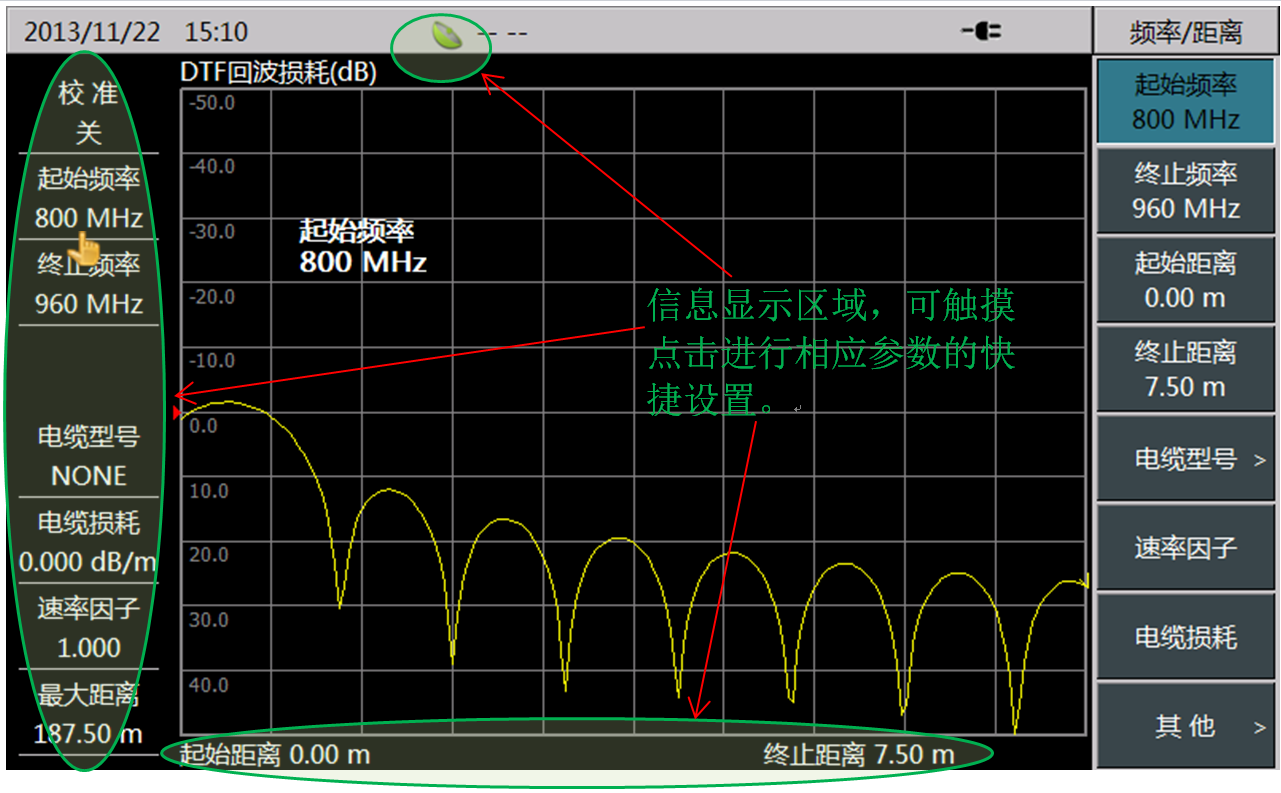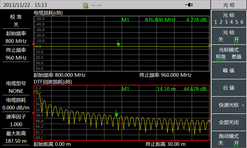 支持回波損耗、駐波比、電纜損耗、DTF回波損耗、DTF駐波比、Smith圓圖、相位(wèi)共七種測量格式。可對電纜、天饋(kuì)線係統進(jìn)行全方位的測量(liàng)及故障診斷。