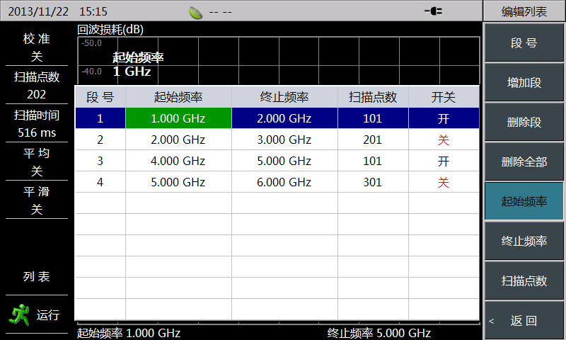 支持列表(biǎo)掃描功能,同時(shí)測量多個頻段,每個掃描段可設(shè)置不同的點數、頻率範(fàn)圍。列表編輯方便快捷,可直接點擊待編輯參數,每個段可(kě)通過開關設置打開或關閉(bì)。