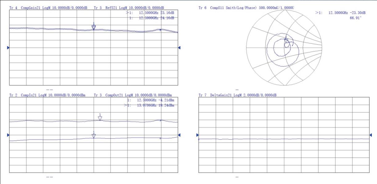 增益壓縮測量功能能夠通過一次連接、一次校準(zhǔn)完成有源器件在工作頻帶(dài)內的線性增益、壓縮點增益、壓縮點輸入功率、壓縮(suō)點輸出功率、線(xiàn)性(xìng)輸入匹配等壓縮參數測量。