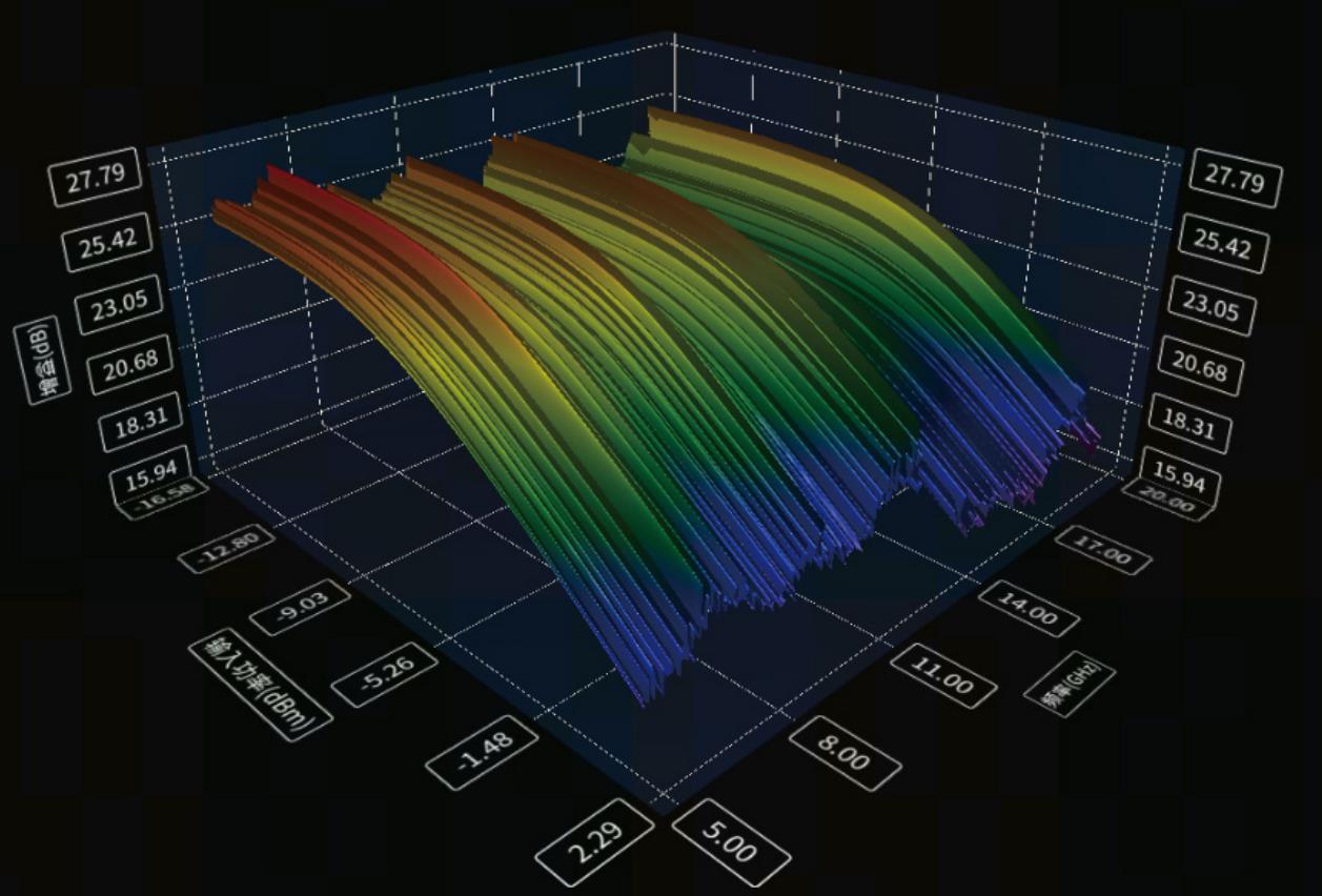 提供三維視圖功能,更好地展示被測件在激勵狀態下(xià)的工作性(xìng)能,另外還可(kě)以展示頻率切麵和功率切(qiē)麵,可(kě)以直觀展現被測(cè)件在每個(gè)頻率點和每個功率點的特性。