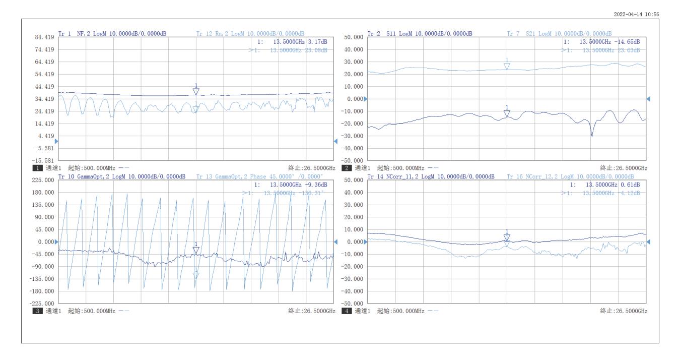 一次連接,可同時測試(shì)S參數、噪聲係數、噪聲參數、增益壓縮和變頻增益等多種參數。基於冷源(yuán)噪(zào)聲係數測試方(fāng)法,可進行精確的噪(zào)聲係數(shù)和(hé)噪聲(shēng)參數測試。通過構建先進的噪(zào)聲相關(guān)矩陣模型,結合矢量網絡分析儀精密的S參數校(xiào)準,適用於較小噪聲係(xì)數被測件的精確測試。測量動態範圍最大可達55dB,適用於較大增益被測件的測試。