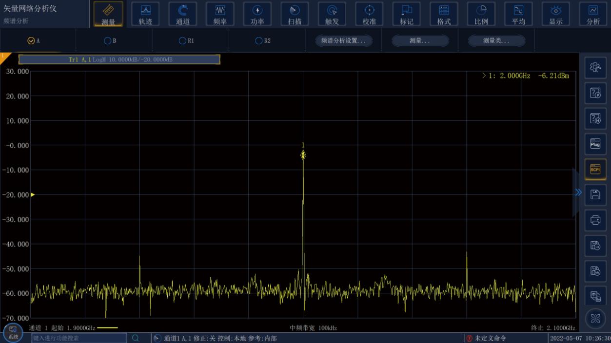 矢量網絡分析儀的每個端口都可以完(wán)成被測件(jiàn)的輸入譜和輸出譜的測量,可在小的分辨率帶寬下快速地定位被測件雜散譜和諧波(bō)的(de)狀態。