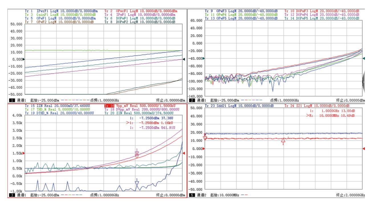 寬頻帶測試,可用於真差分激勵下的輸入輸出功率、增益、諧波總失真等參數的分析,簡化差分器件(jiàn)的諧波性能測試複雜度。