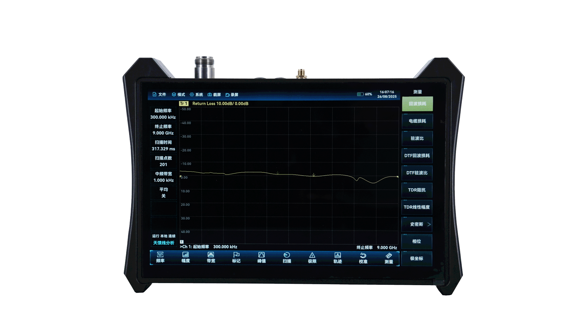 3681B天饋線(xiàn)測試儀具有體積小、重量輕的特點,便於機動攜(xié)帶和狹小測(cè)試空(kōng)間使用,整機采用(yòng)10.1寸液晶觸摸屏,操作簡單,人機界麵友好,可提高用戶外場測(cè)試效率。