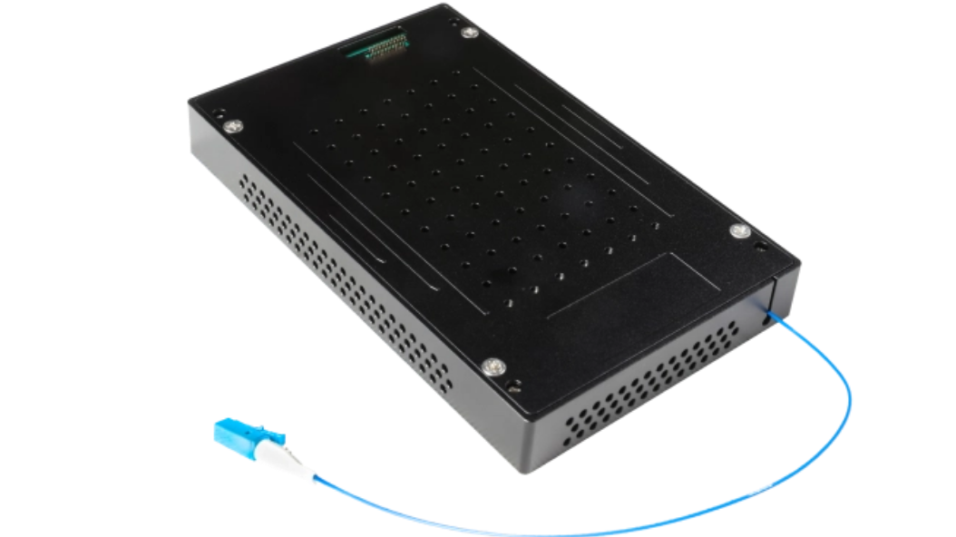 6415B外觀結構采用鋁合金材料,堅固(gù)耐(nài)用,該產品具有通用電氣接口及FC/UPC光接口,具備以(yǐ)太網、RS232兩種通信接口(kǒu),RS232接口用於獲取產品信息,查看並(bìng)設置初始化IP地址(zhǐ);以太網接口用於控製整個模塊,實現命令(lìng)的發送和數據的傳輸。