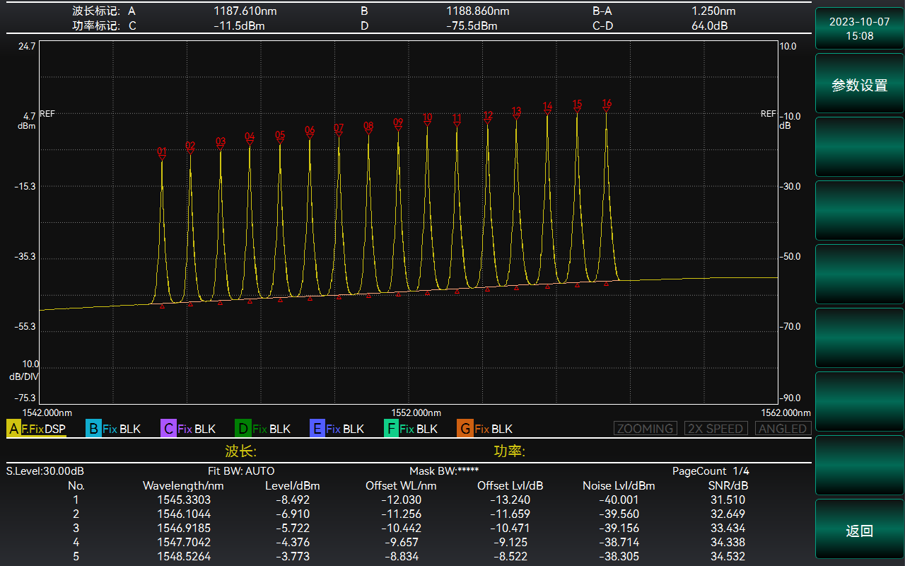 ndB損(sǔn)耗法測(cè)試(shì)中心(xīn)波長和光譜帶寬