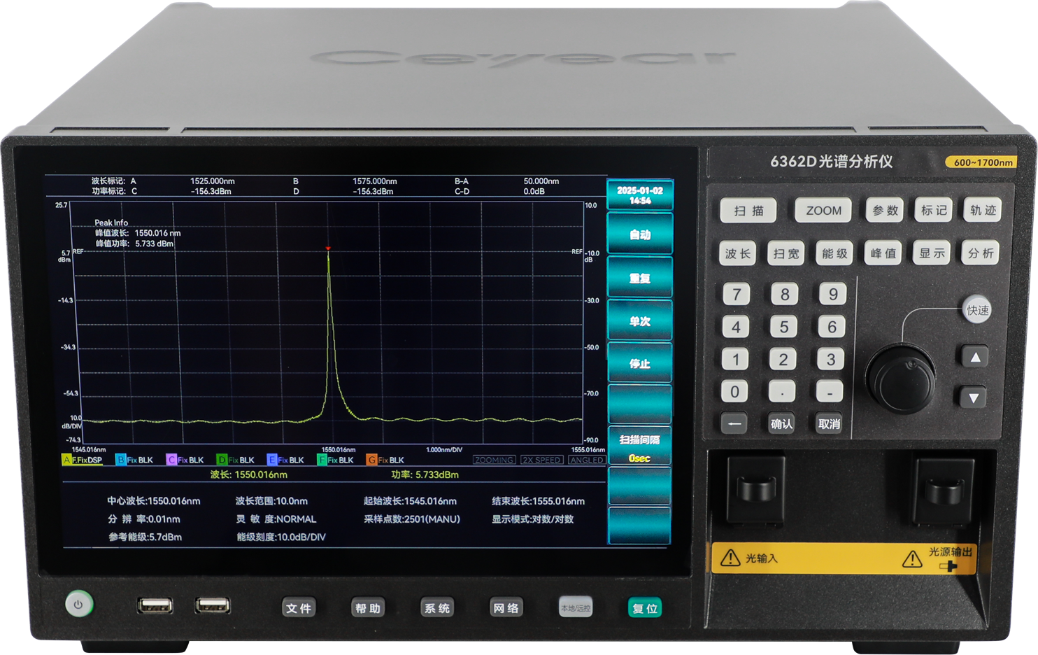 6362D光譜分析儀(光(guāng)譜儀)采用(yòng)擁有自主知識產權的光譜自適應峰值檢索算法,峰值檢索準確度高,自(zì)適應性和魯棒性強,且運算速度快。