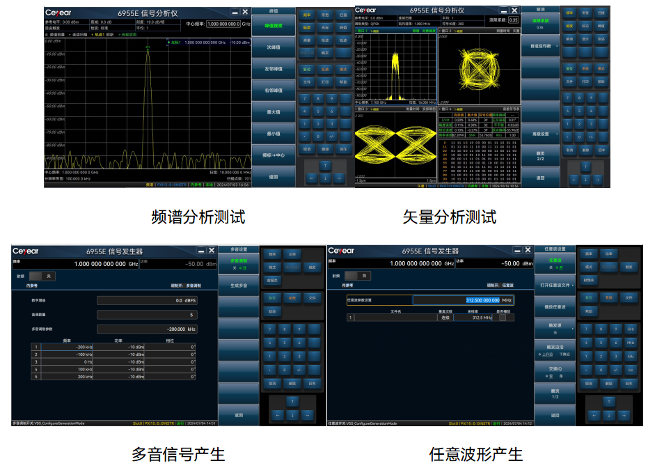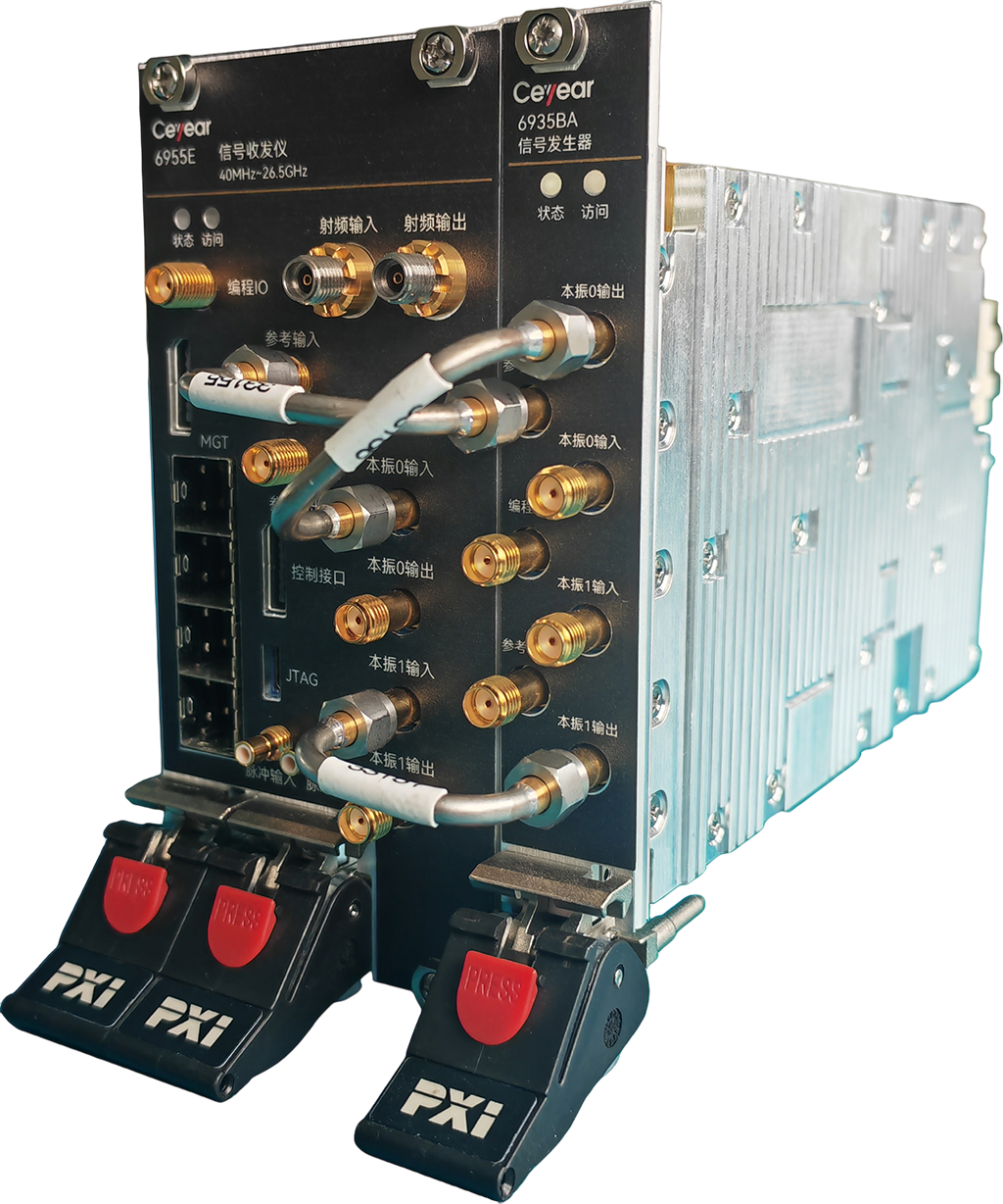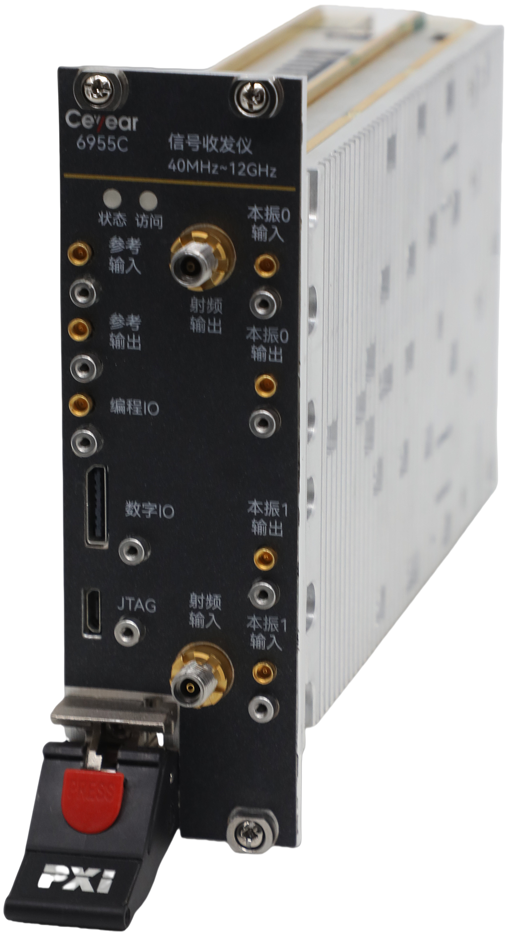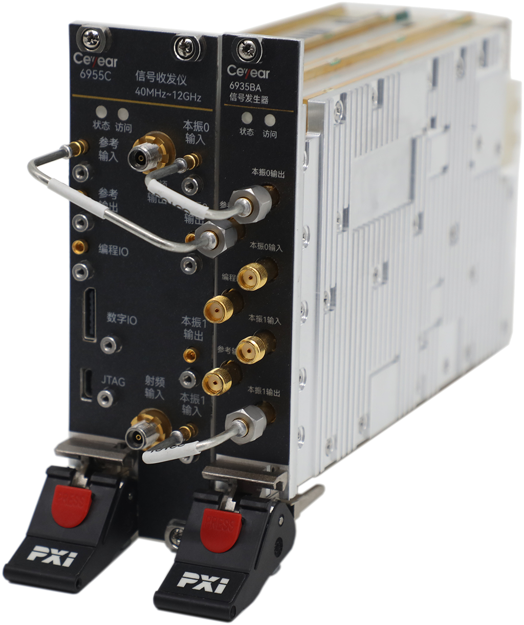 6955BA/C/E信號收發(fā)儀為符合PXIe總線標準的3U模塊化產品(pǐn),該模塊頻率範圍覆(fù)蓋40MHz~8GHz/12GHz/26.5GHz、最大(dà)信號帶寬1GHz、單邊帶相位噪(zào)聲為-120dBc/Hz@20kHz頻偏(載波10GHz,典型值),具有(yǒu)矢量信(xìn)號分析、矢量信號發生與基於FPGA的實時信號處理和控製能(néng)力,能夠(gòu)同時完成(chéng)微波矢量(liàng)信號的接收與發射,對信號數據進行(háng)高速大容量存儲與處理。優異的(de)性能使其可廣泛應用於射頻半導體、通信係(xì)統、導(dǎo)航模(mó)擬、5G測試(shì)、物聯(lián)網測試(shì)和收發類設備測試等領域。