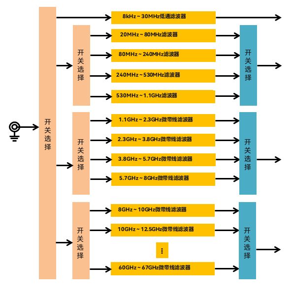 電平通(tōng)道具備42檔(dàng)濾波器,解(jiě)調帶寬覆蓋10Hz到80MHz
