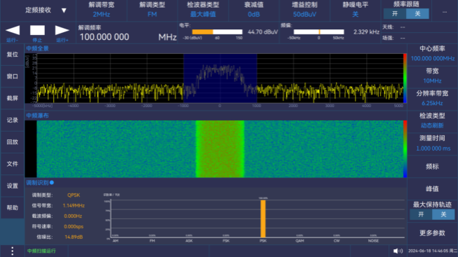 支持(chí)定頻接(jiē)收、全景掃(sǎo)描、頻率掃描、列表掃(sǎo)描