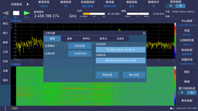 支持頻譜、IQ、音頻實時輸出(chū)與記(jì)錄
