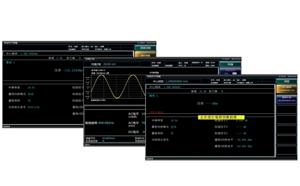 綜合頻譜分析儀、功率計、調製度分析(xī)儀(yí)、頻率計和音頻分析儀等儀器的功能