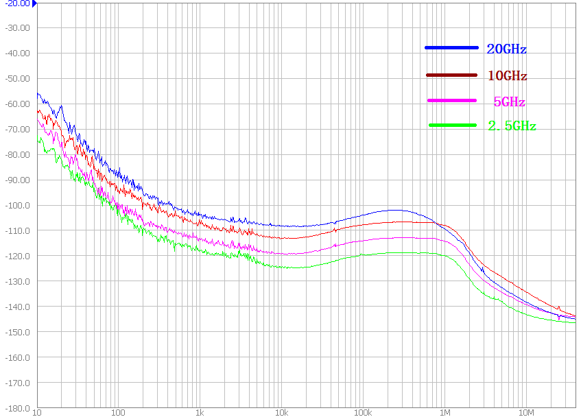 優異(yì)的相位噪聲指標:-110dBc/Hz@10kHz(10GHz載波,典型值1