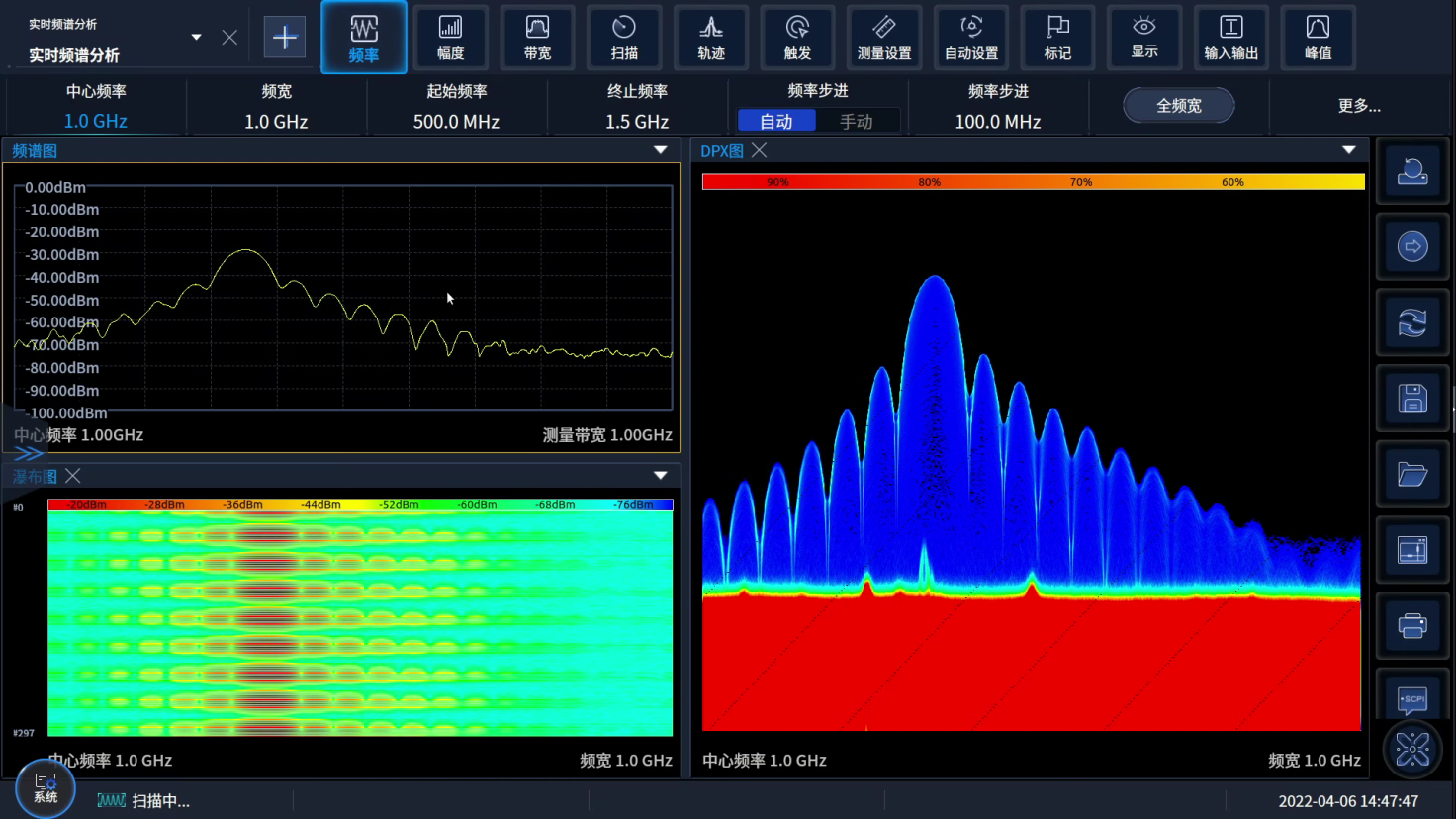 實時頻譜(pǔ)分析功能是突發、捷變、跳頻信號等隨時間變化信號的極佳測試工具。