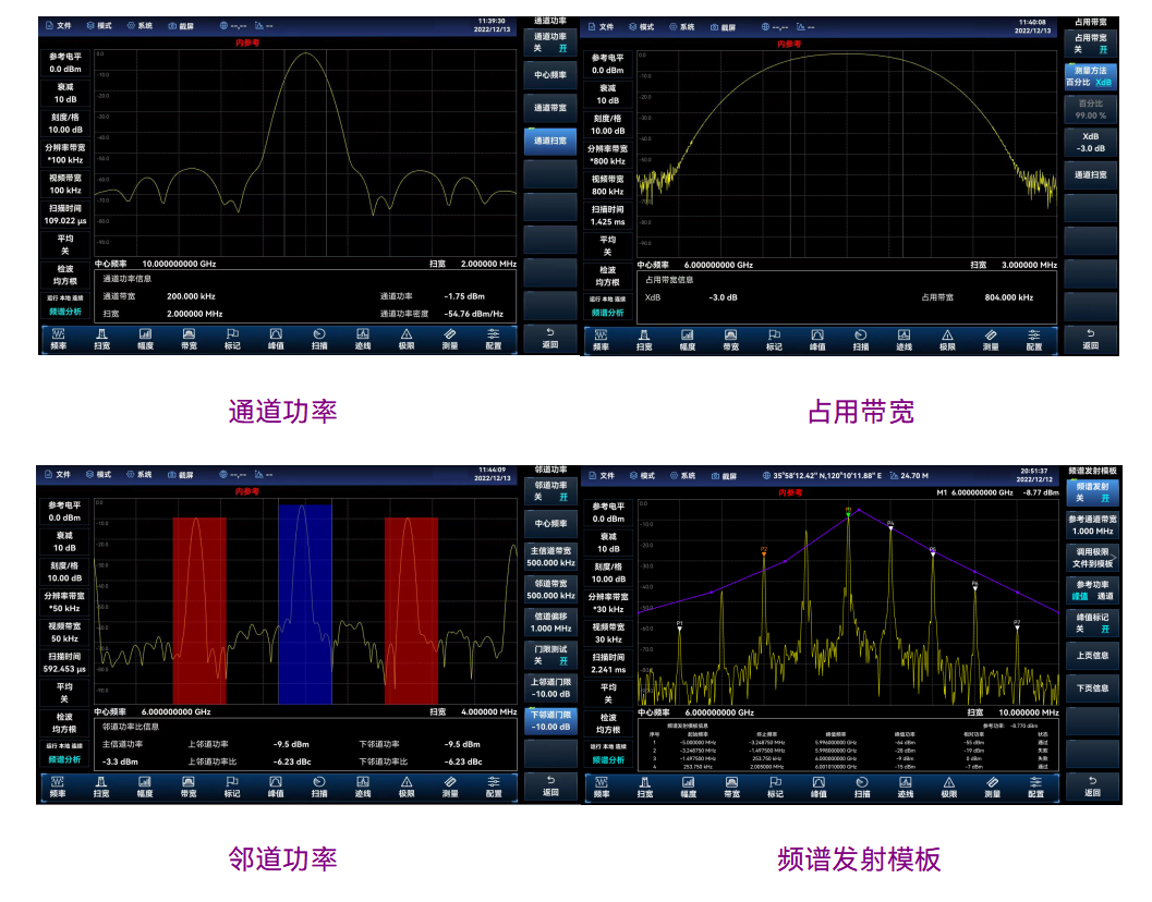 多種智能測量功能:通道(dào)功率、占用(yòng)帶寬、鄰道功率(lǜ)、頻譜發射模板、載噪(zào)比、諧波失真、雜散發(fā)射模板(bǎn)等;
