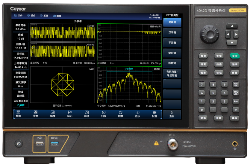 4042係列頻譜(pǔ)分析儀具(jù)有實時頻譜分析、幹擾分析、信道掃描、場(chǎng)強(qiáng)測量、USB連續波與峰值功率測量、模擬解調(diào)分析、IQ分析等多種測量功能模式,以及通道功率、占用(yòng)帶(dài)寬、鄰道功率、頻譜(pǔ)發射模板、載噪比、諧波(bō)失真、雜散發射模板等(děng)智能測量功能,支持LAN、USB、HDMI等數字接口。4042采用的12.1寸多點觸控電容觸屏帶來更好(hǎo)的交互體驗,產品可應用於工業電子產品的研發和測(cè)試過(guò)程以及通信(xìn)測(cè)試、衛星通信、微波通(tōng)信、科研教學等眾多領域。