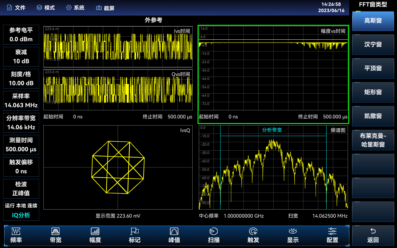 IQ分析(xī)選件支持IQ數據的捕獲及顯示,能夠支(zhī)持IQvs時間、幅度vs時間、頻譜圖和IvsQ等圖形顯示界(jiè)麵。