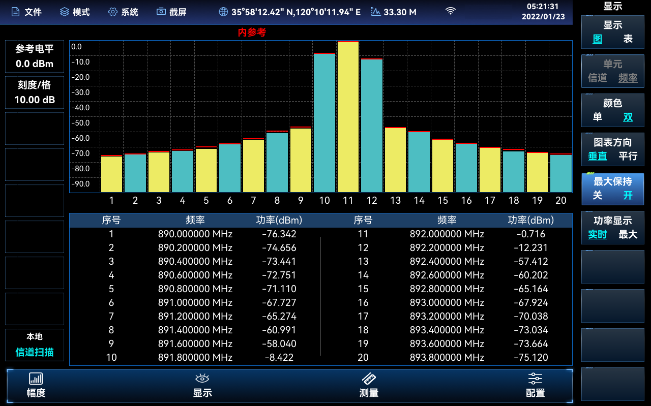 信(xìn)道掃描測量模式提供對多個信道的信號功率的測量。信號功率以條形圖的形式或是列表的形(xíng)式來顯示,最多可測(cè)量20個信道的信號功率。依據(jù)設置信道的方式分為三種測量方式:信(xìn)道掃描、頻率掃描、列表掃描,三種測量方式均可設置信道(dào)的帶(dài)寬和信(xìn)道的數量。